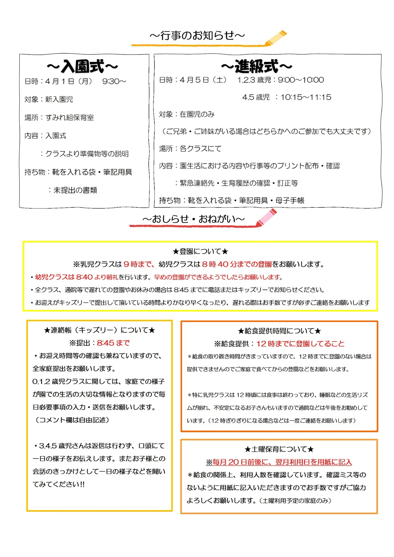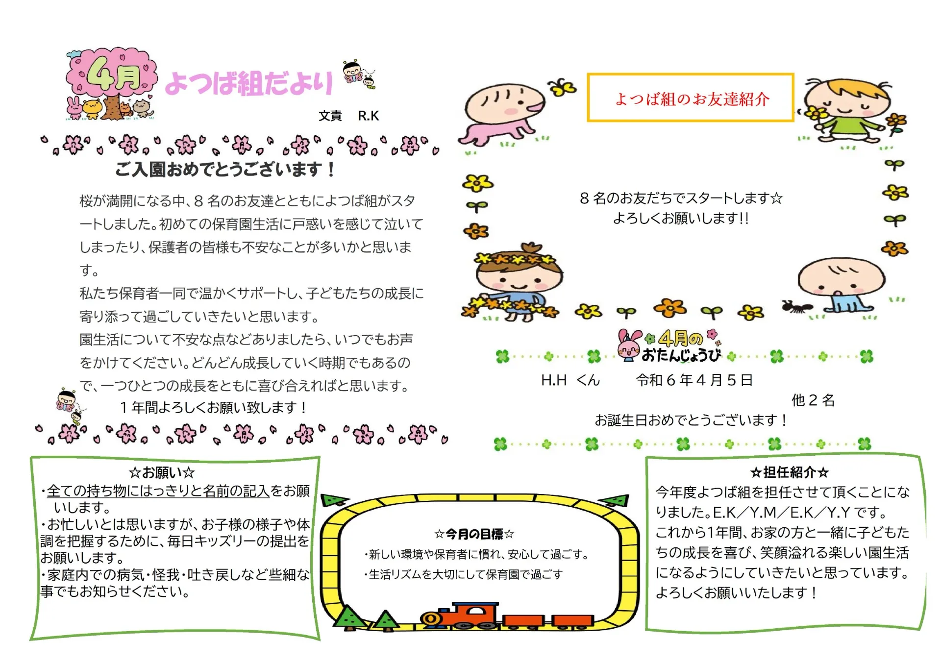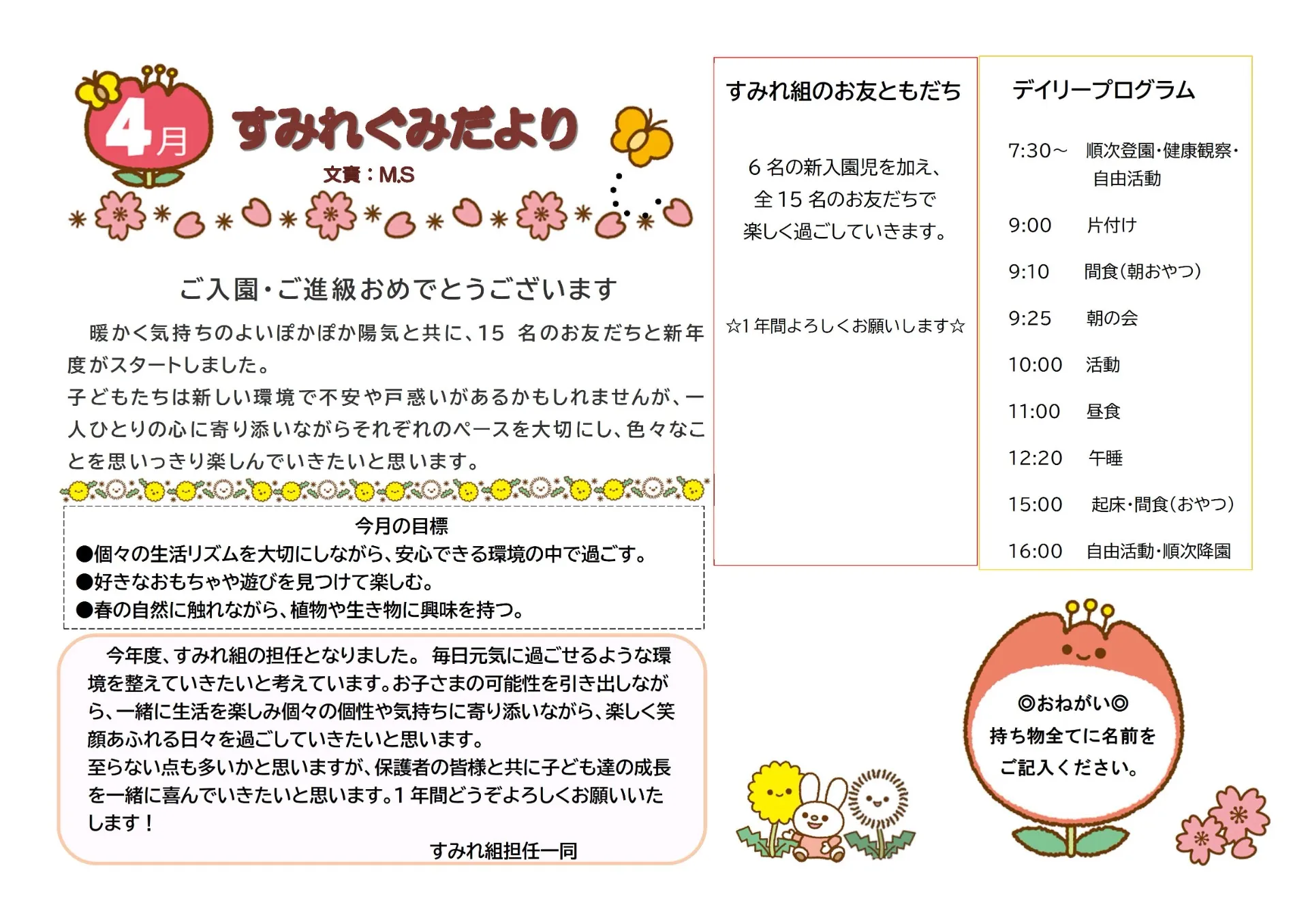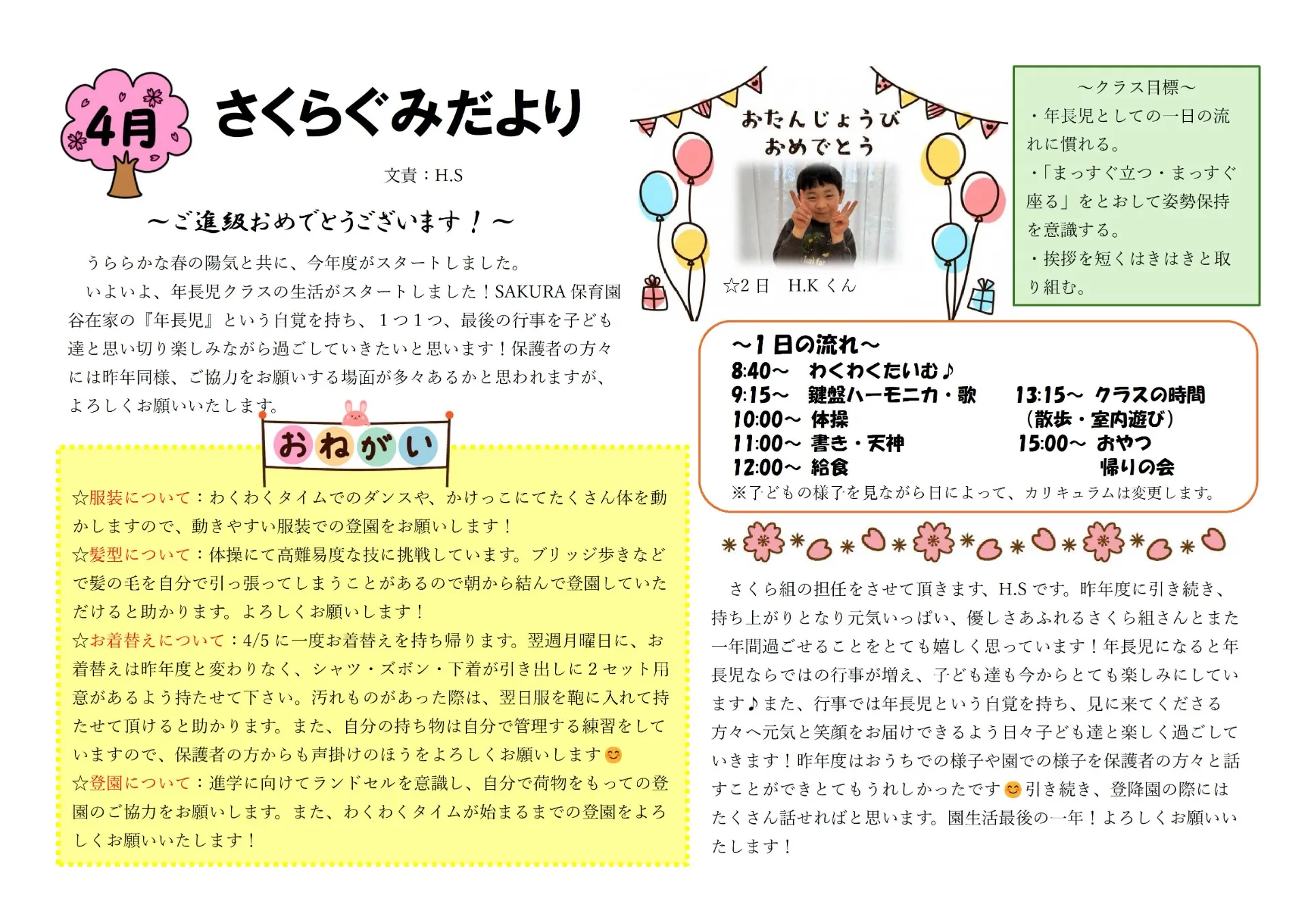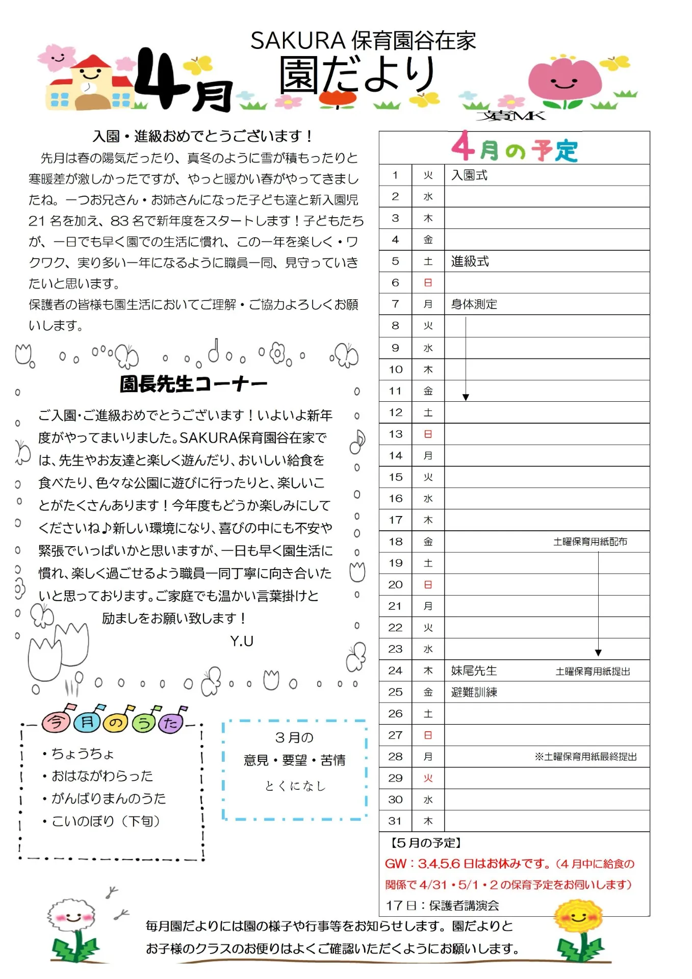 4月の園だより SAKURA保育園谷在家