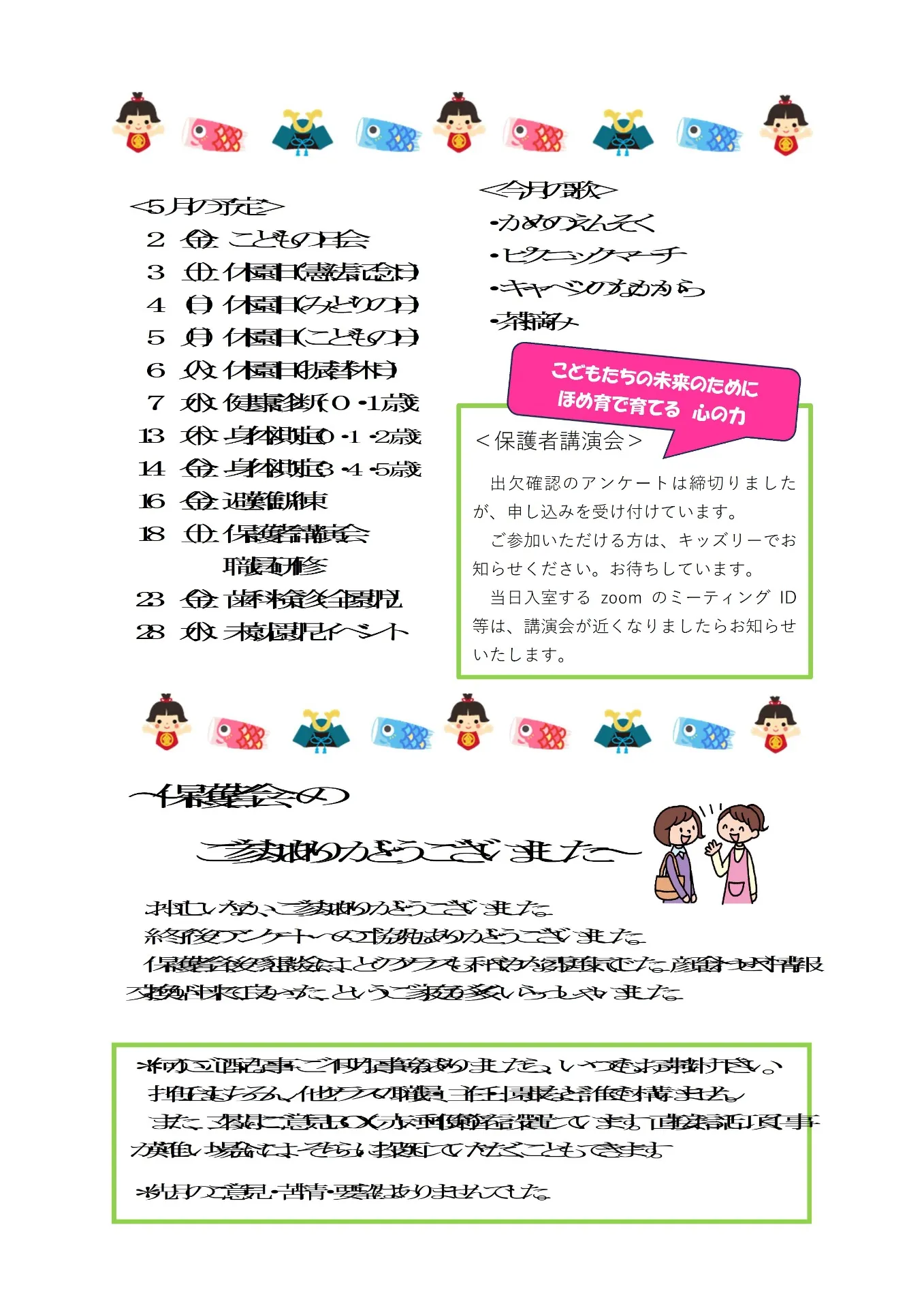 SAKURA保育園千川 5月の園だより