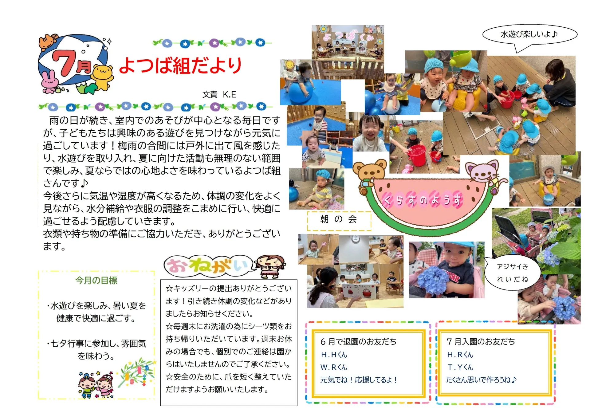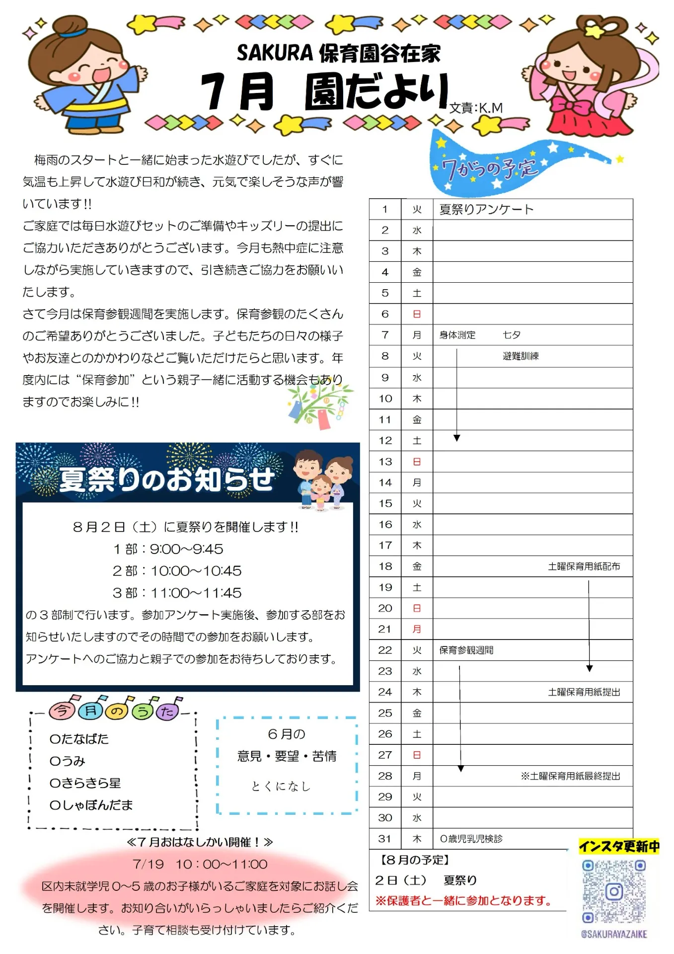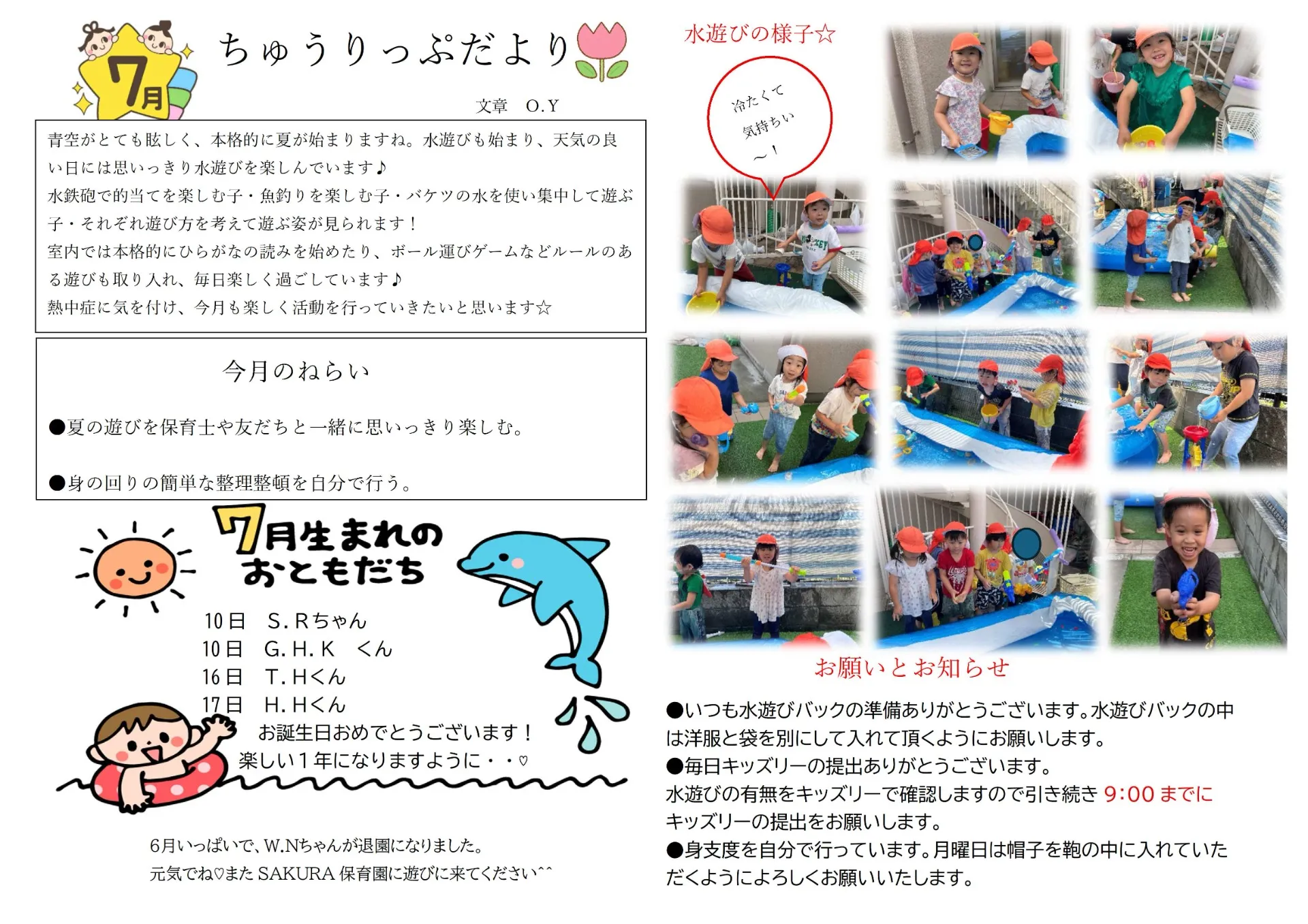 7月の園だより SAKURA保育園谷在家