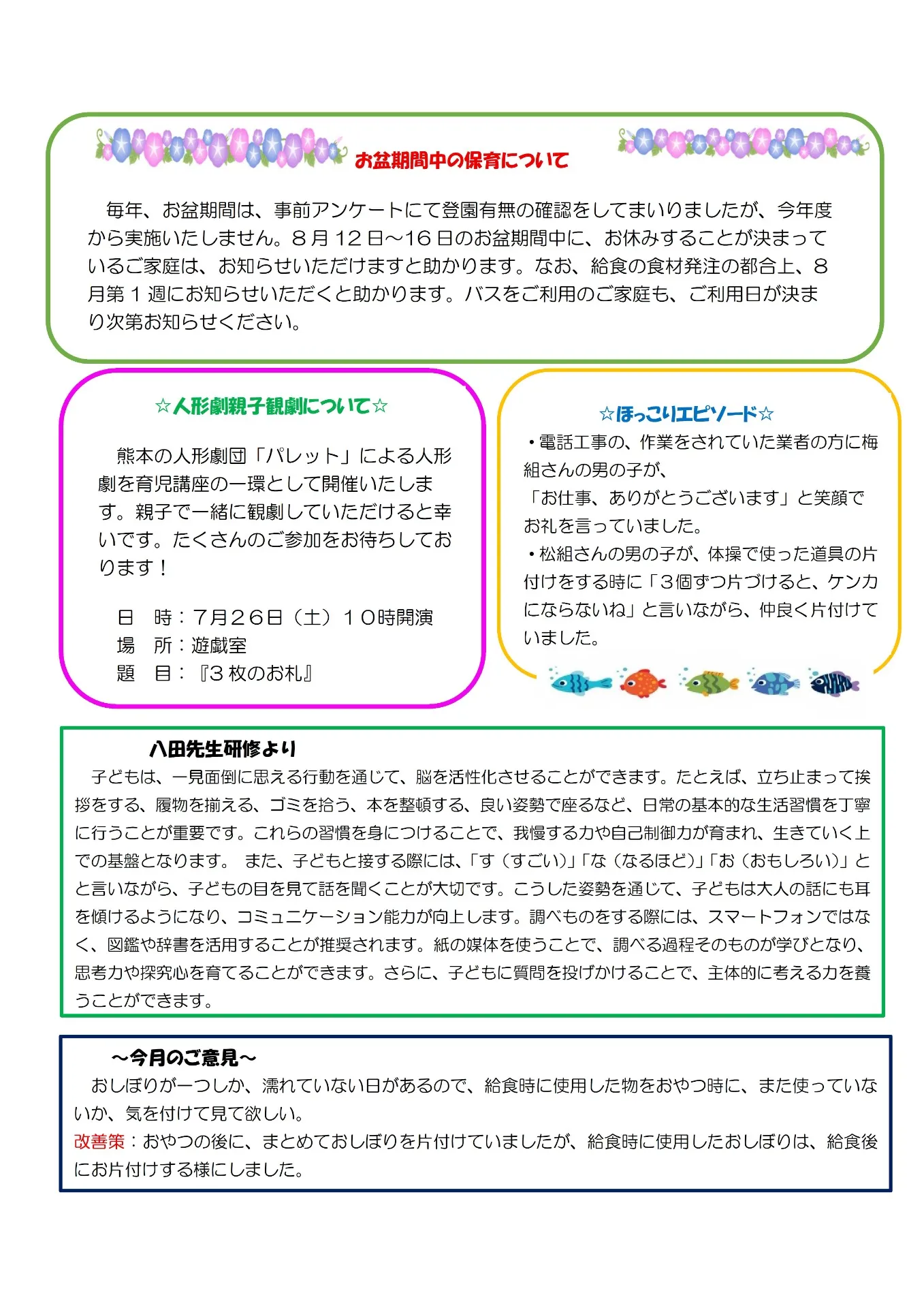 慈光こども園 7月園だより