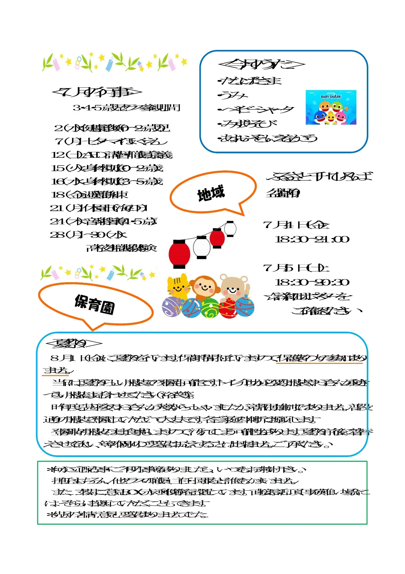 SAKURA保育園千川 7月の園だより