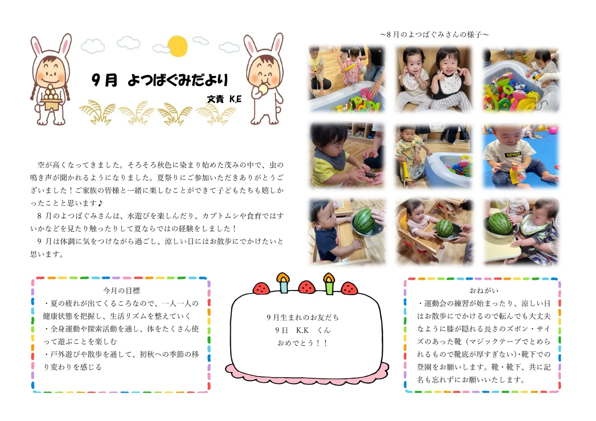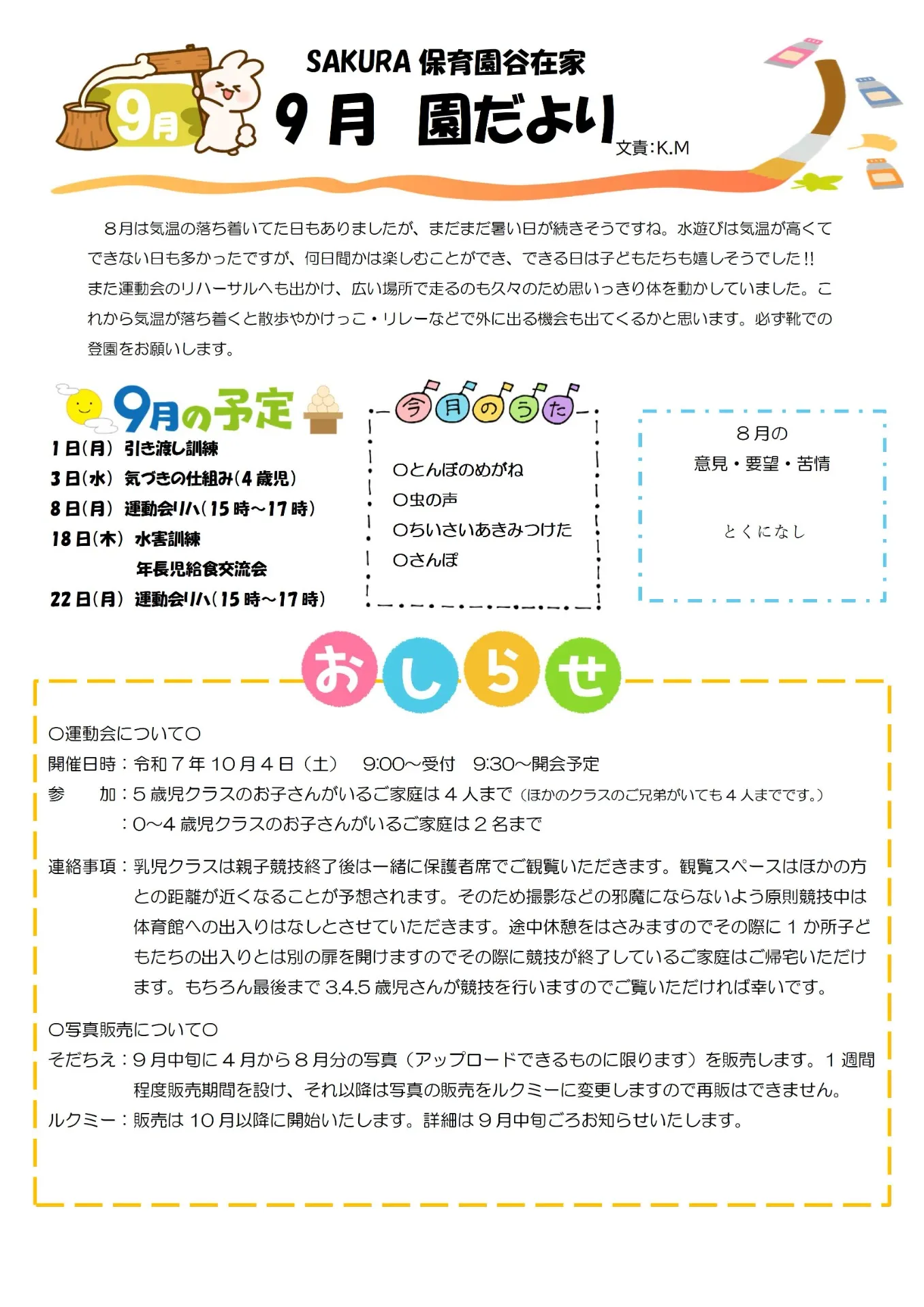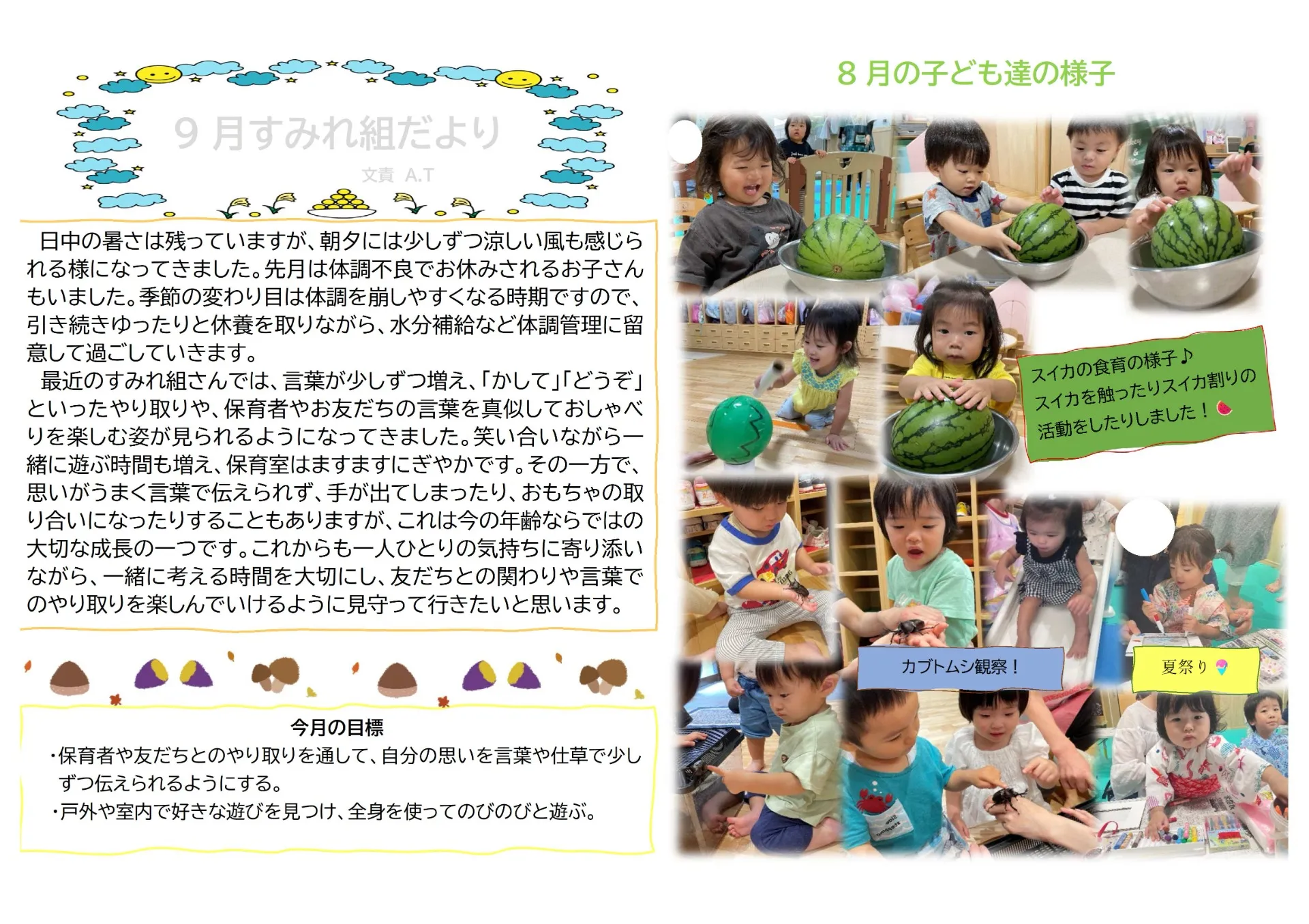 9月園だより SAKURA保育園谷在家