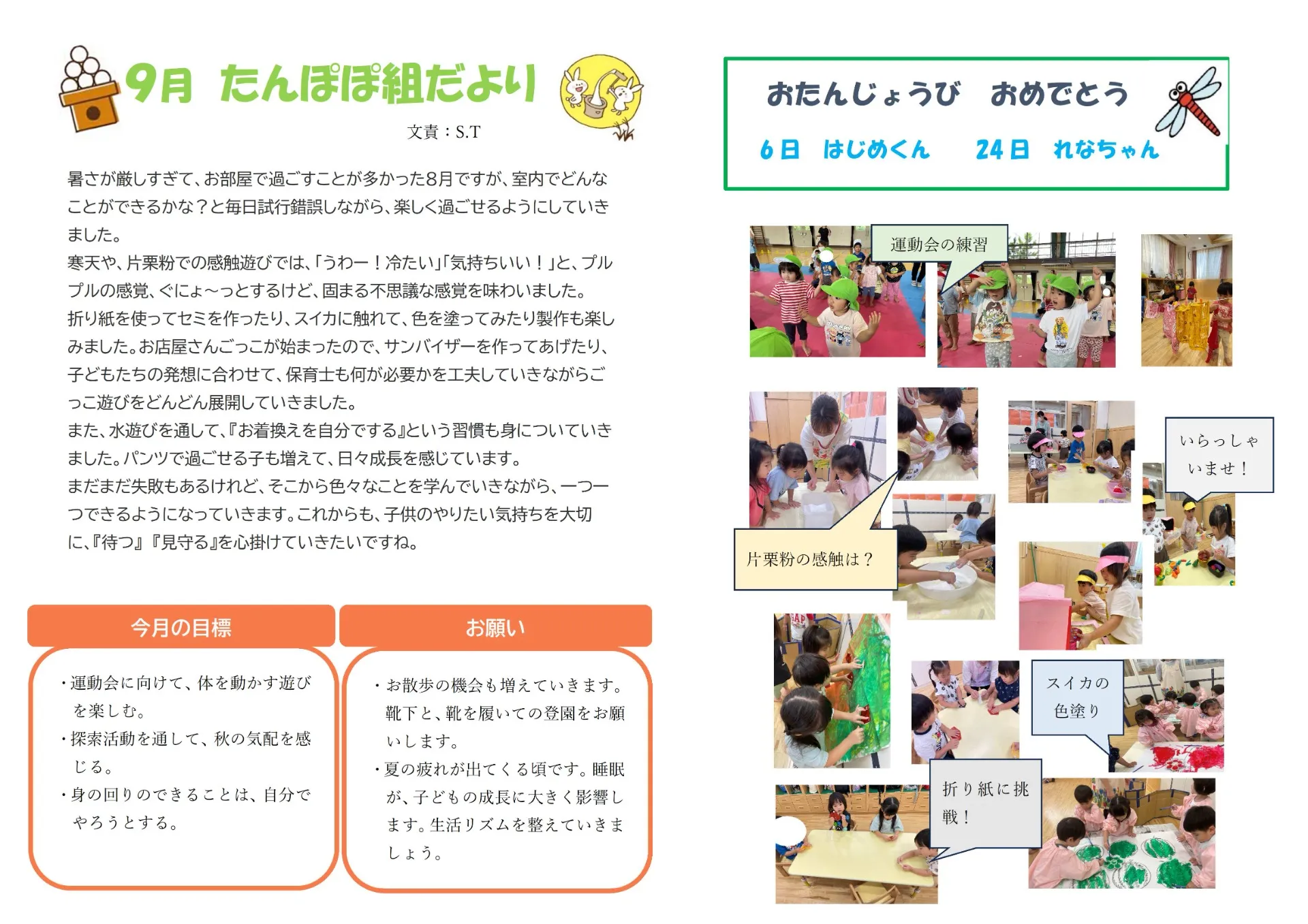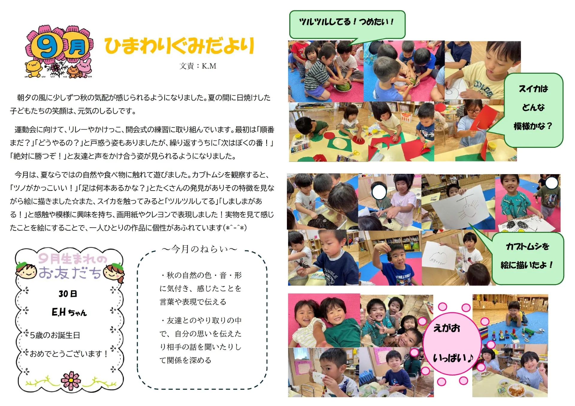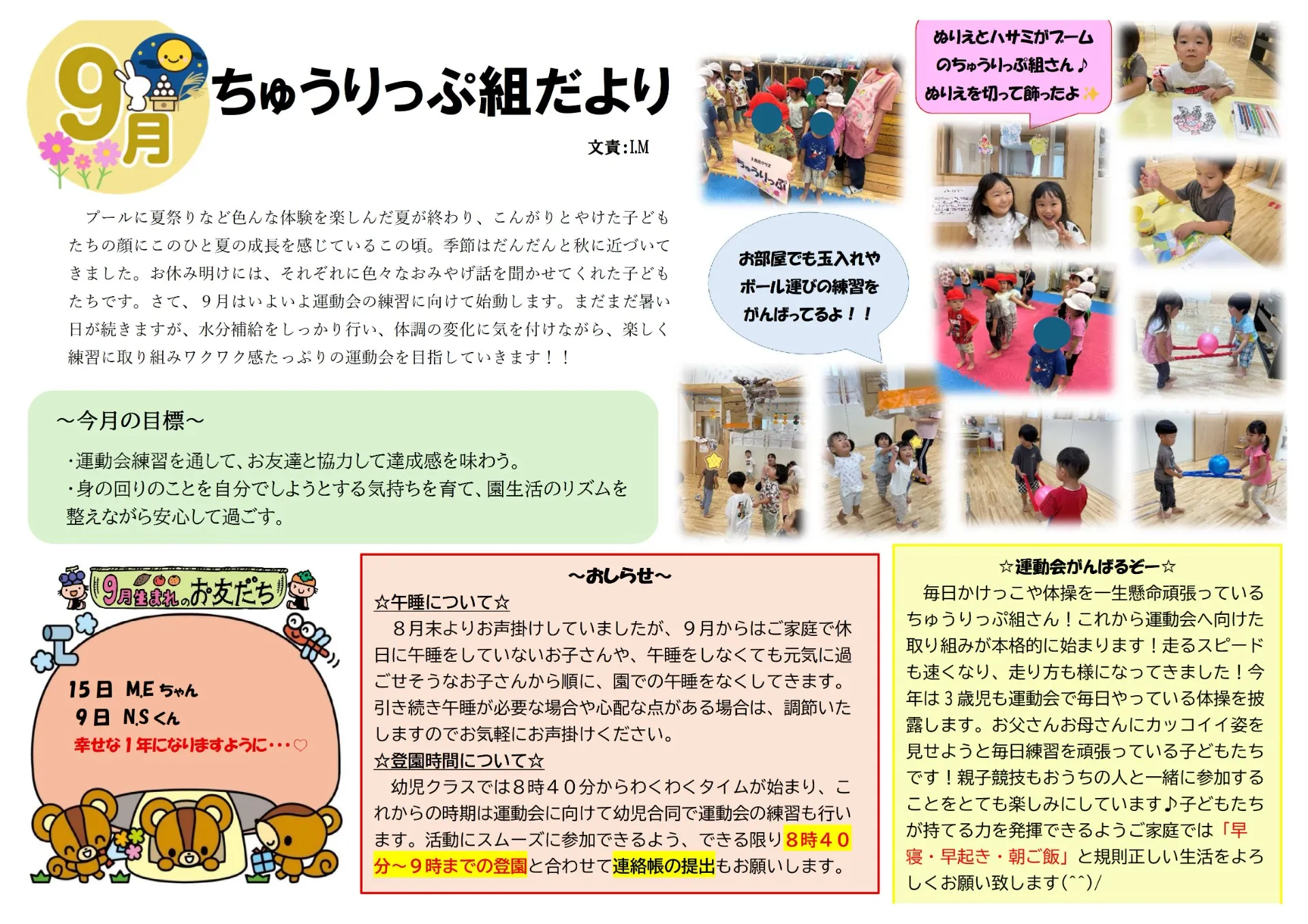 9月園だより SAKURA保育園谷在家