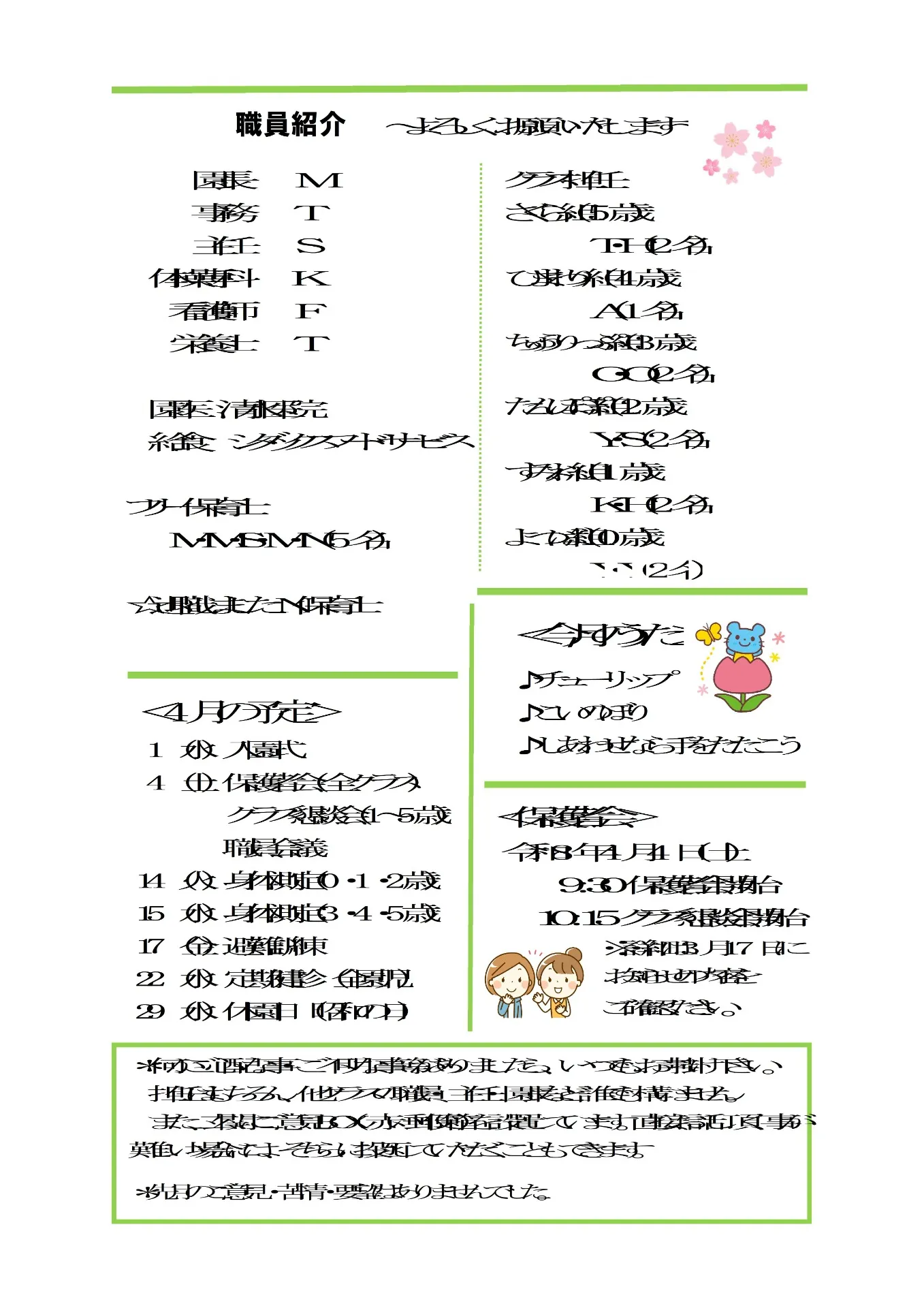 SAKURA保育園竹の塚 4月の園だより