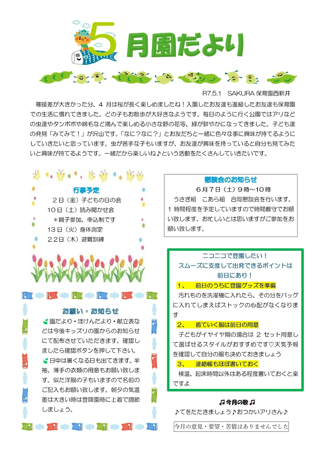 SAKURA保育園西新井5月の園だより