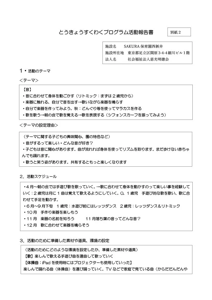 SAKURA保育園谷在家 スクワク報告書