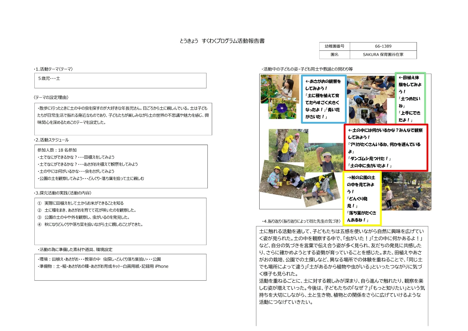 SAKURA保育園谷在家 スクワク報告書